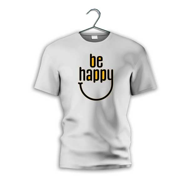 Be Happy – Print Round Neck Dry Fit White Polyester T-Shirt